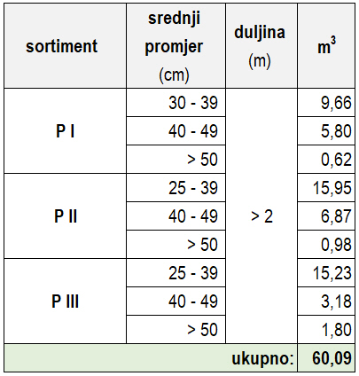 Detaljan opis drvne mase po sortimentima i pločicama nalazi se u PDF formatu na ovoj poveznici .